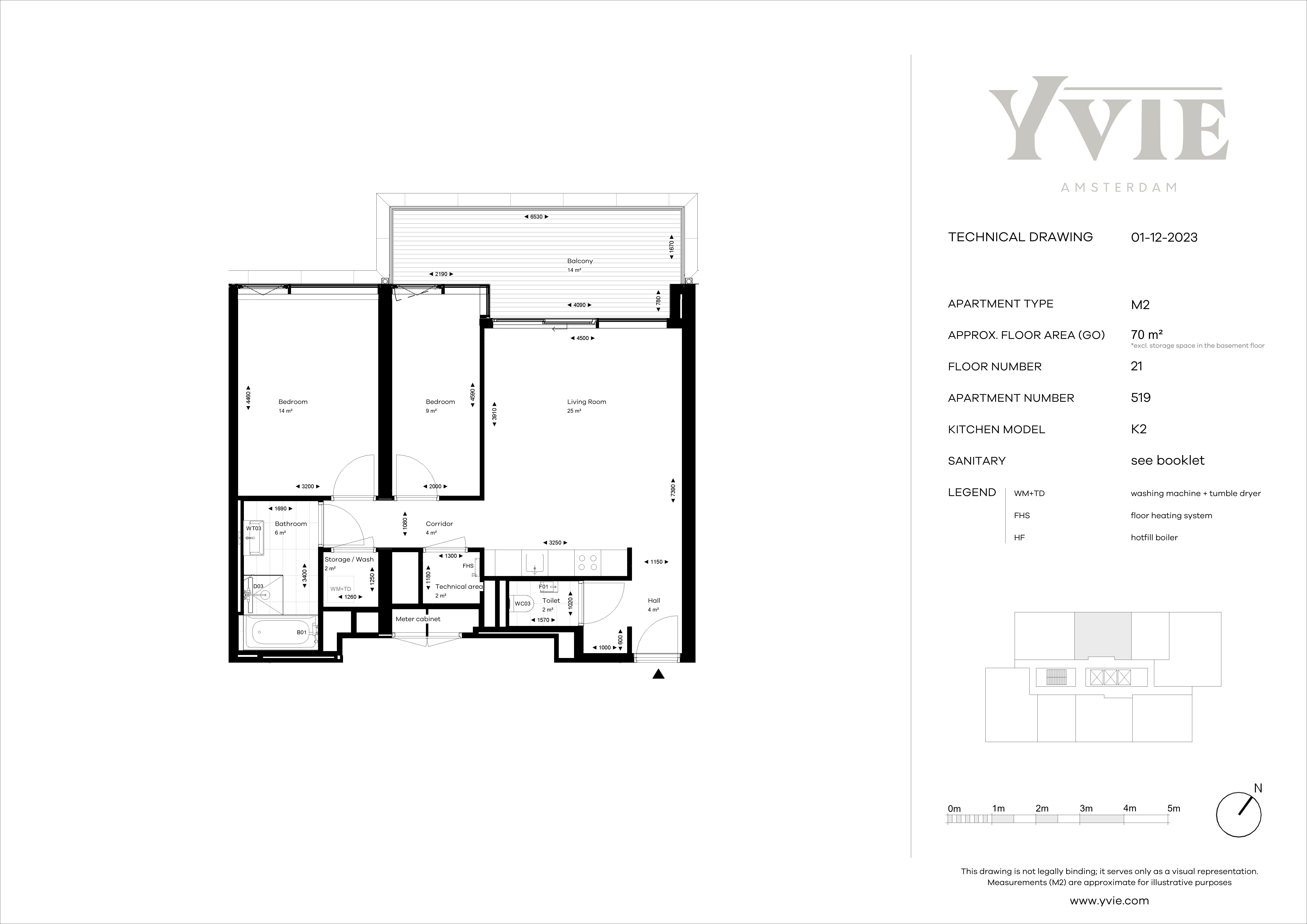 De woning beschikt over een ruime en lichte woonkamer met open keuken, twee slaapkamers (ca. 14 m² en 9 m²), een moderne badkamer, een apart toilet, een technische ruimte, en een berg-/washok. Dankzij de vloerverwarming is het overal comfortabel wonen. Op het fijne balkon, gelegen op het noordoosten, geniet je van de ochtendzon en een prachtig wijds uitzicht over de stad.