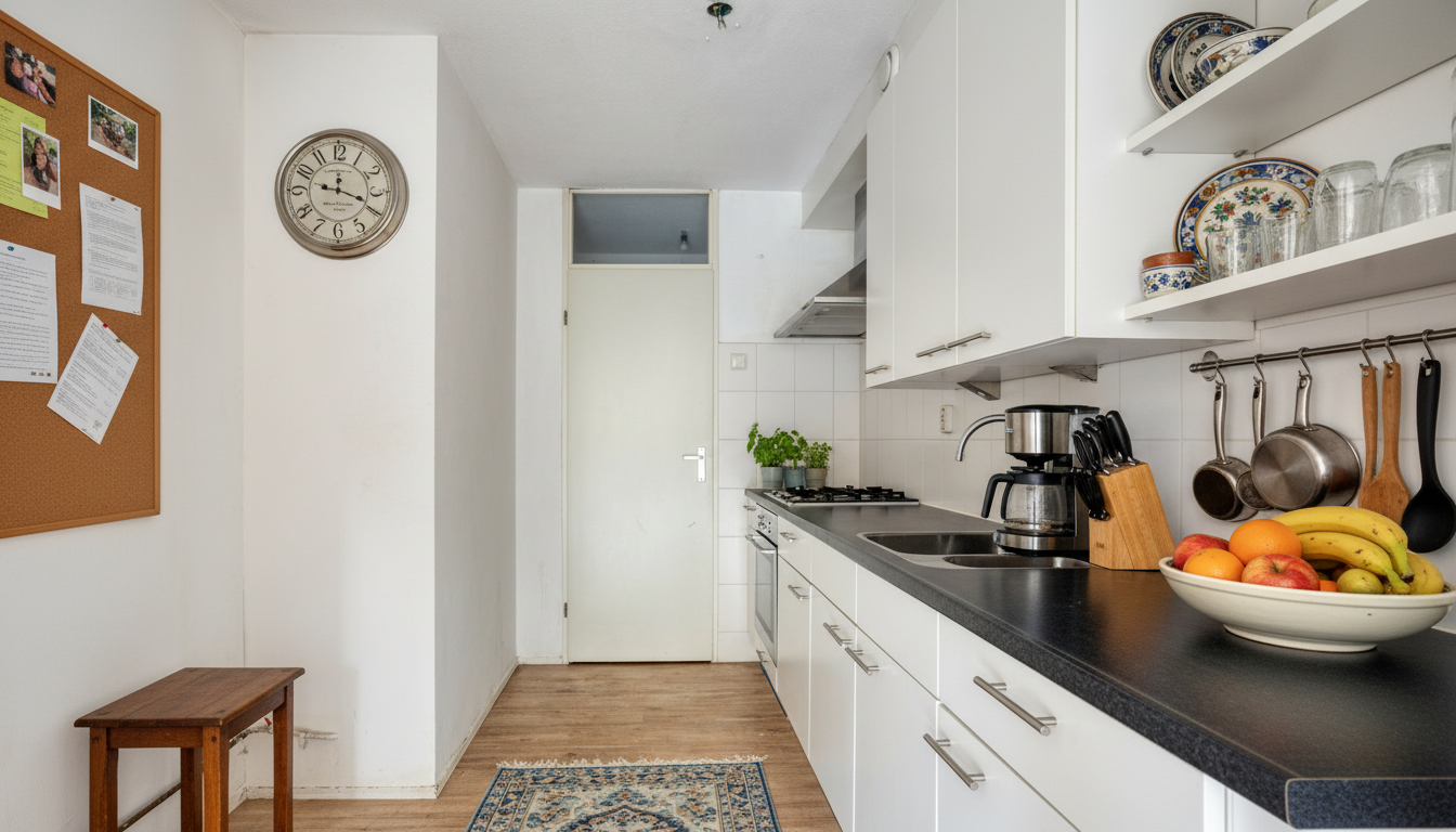 De ruime woonkamer wordt prachtig verlicht door het vele daglicht en biedt direct toegang tot het balkon – perfect voor een kop koffie in de ochtend of een borrel met vrienden in de avond. De keuken is goed onderhouden en functioneel, voorzien van een oven, gasfornuis met ingebouwde afzuiging en voldoende opbergruimte.