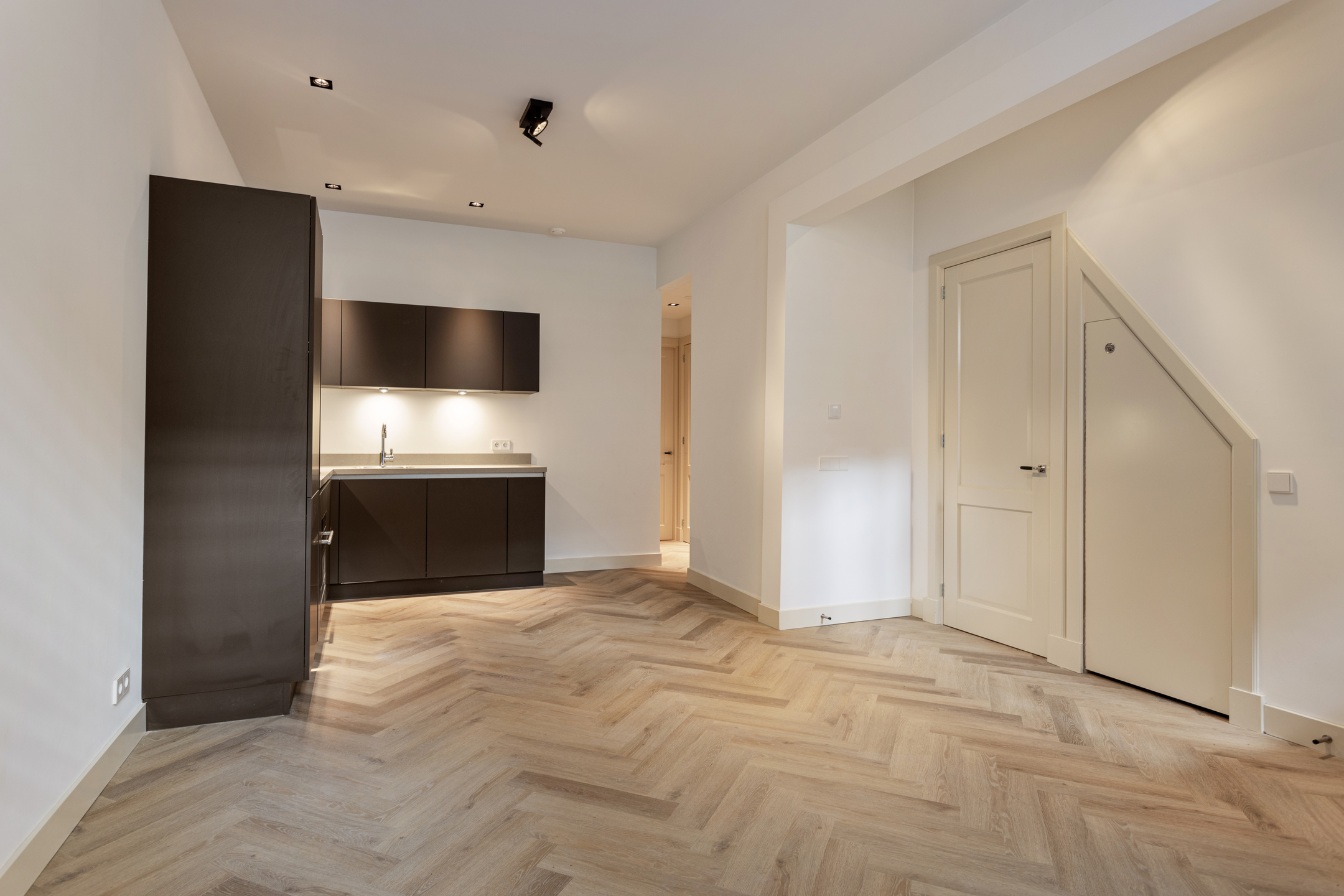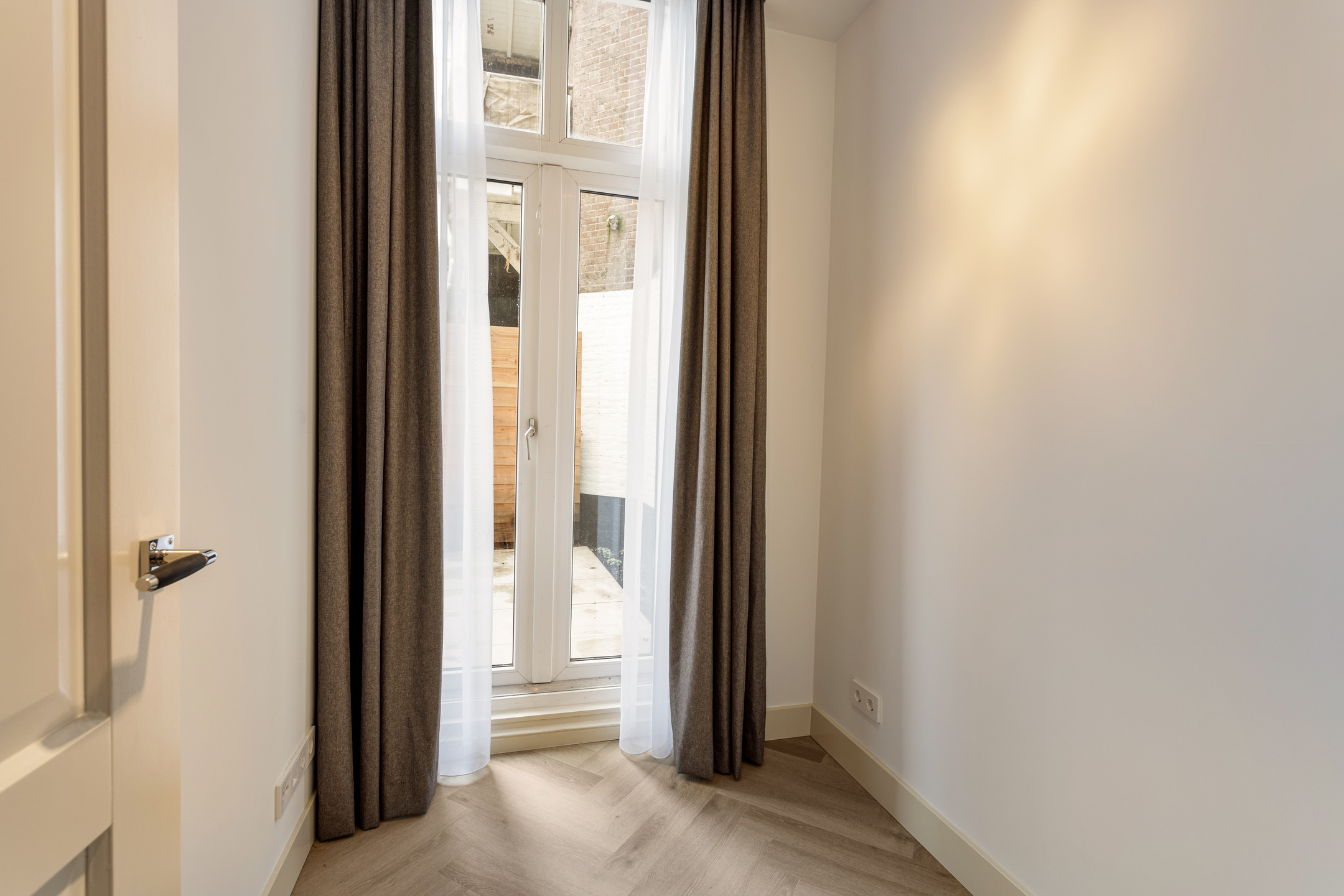 The apartment is completely renovated in 2023/2024 and has a surface of 53 square meters. At the front of the apartment is the living area with a luxurious kitchen. The kitchen is equipped with a induction plate, extractor hood, dishwasher, refrigerator with freezer and combi oven. At the rear of the apartment is the bedroom of approximately 12 square meters and a small office. From both of the rooms you can reach the garden. In the middle of the apartment you find the modern bathroom, equipped with a walk in shower and double sink, the toilet is separate. The apartment also has an spare washroom.
